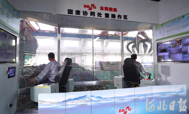河北金隅鼎鑫水泥有限公司的工作人员在固废协同处置操作区操作抓斗,将生活垃圾投入板喂机。 鹿泉区委宣传部供图建体系,实现危险废物信息化追溯